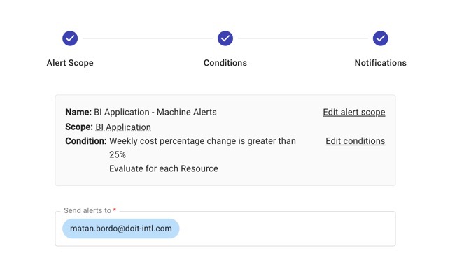 For these situations where you’d want your stakeholders to be aware of usage at more granular levels, DoiT customers set up Alerts.