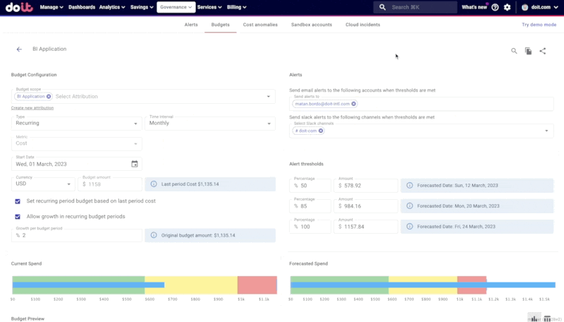 Many DoiT customers create Budgets and automate alerts for stakeholders in the DoiT Console — but not just for financial planning.