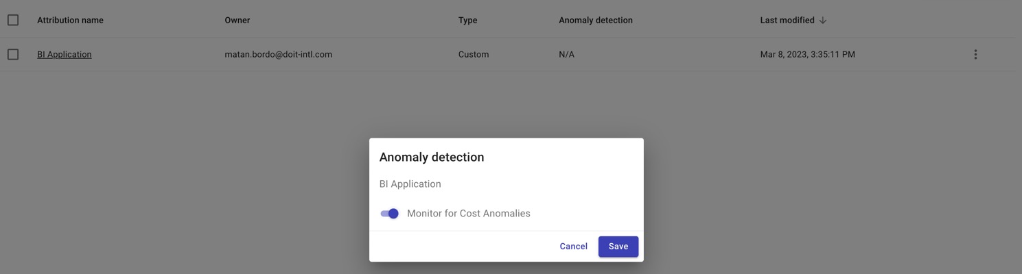 Anomaly Detection autonomously defines what “normal spend behavior” looks like for your organization — per account/project, per service — notifying you when anomalous spend is detected.