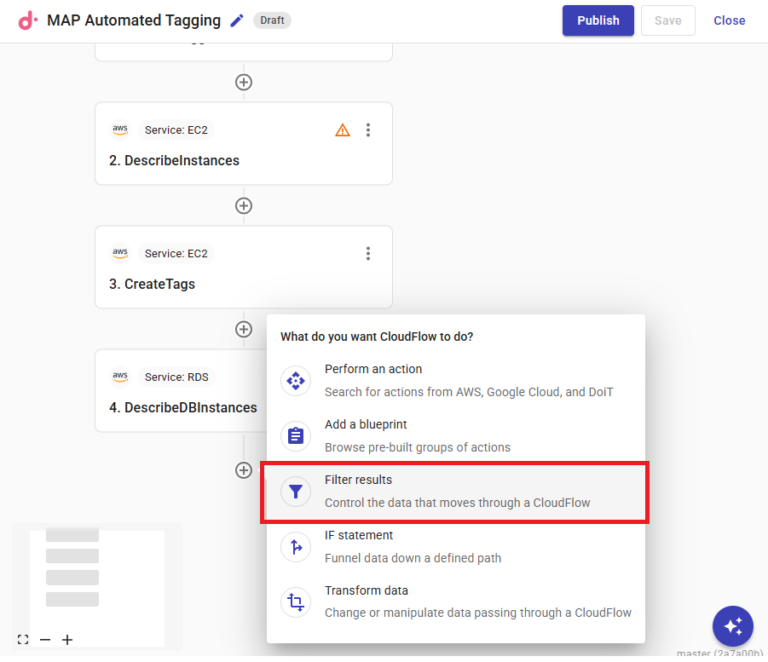 Next, you'll want to create a new step, and this time select 'Filter results.'