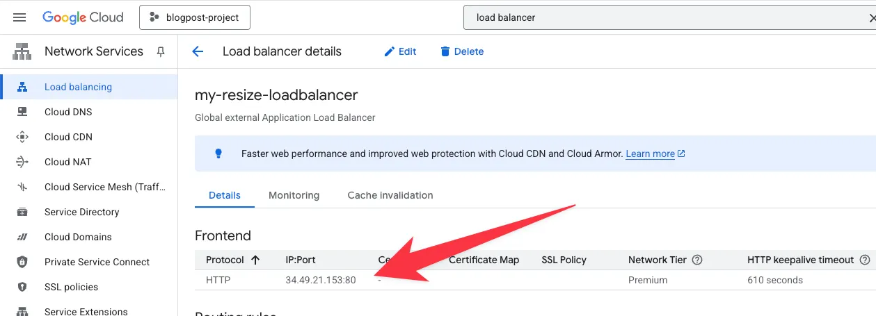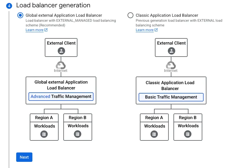 Elegimos el equilibrador de carga Global para aprovechar la función CDN de Google Cloud, que nos permite almacenar en caché la imagen redimensionada en el servidor de borde (sin coste adicional).